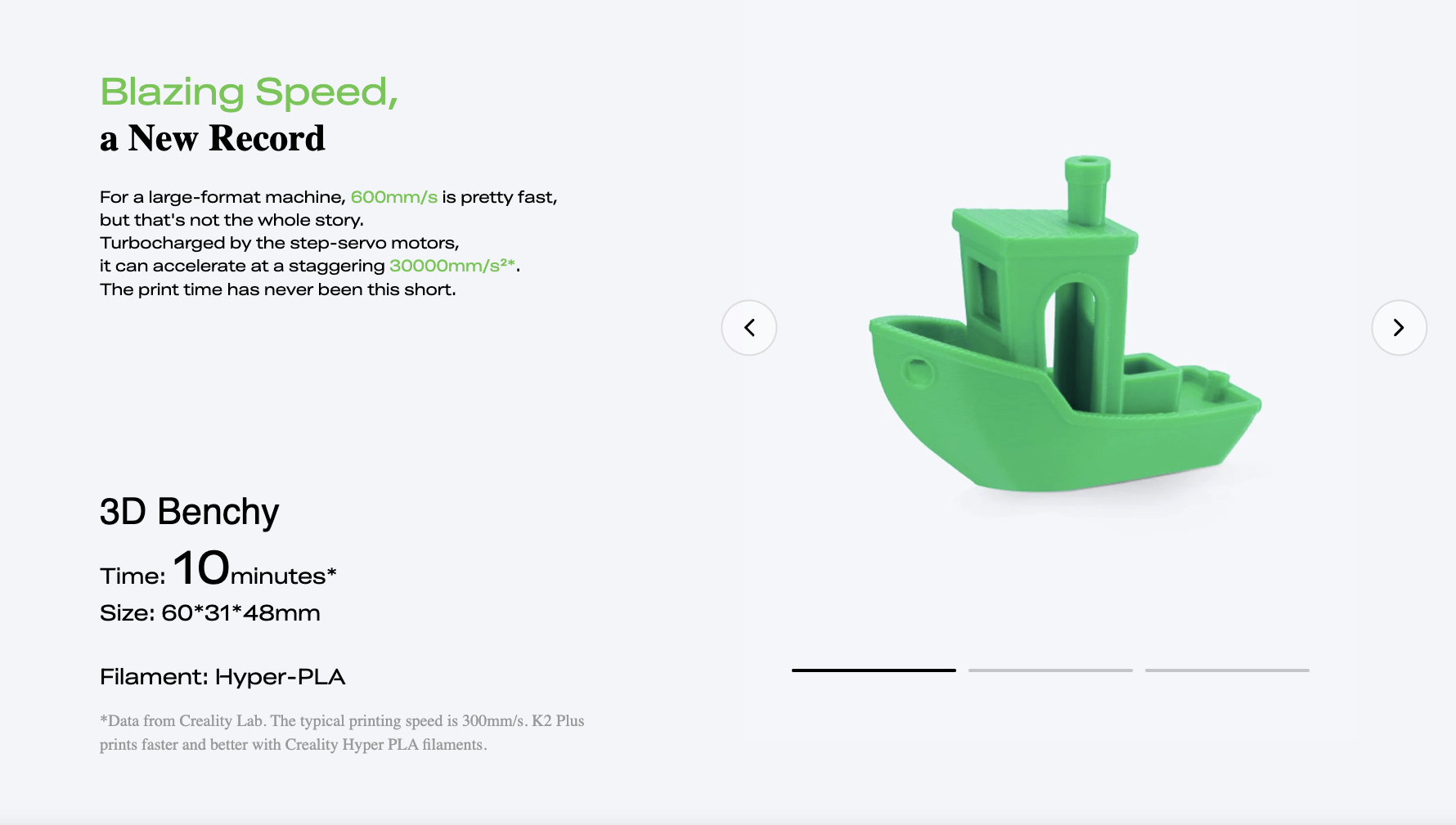 🚀 Ultra-fast performance: up to 600 mm/s print speed and up to 30,000 mm/s² acceleration.