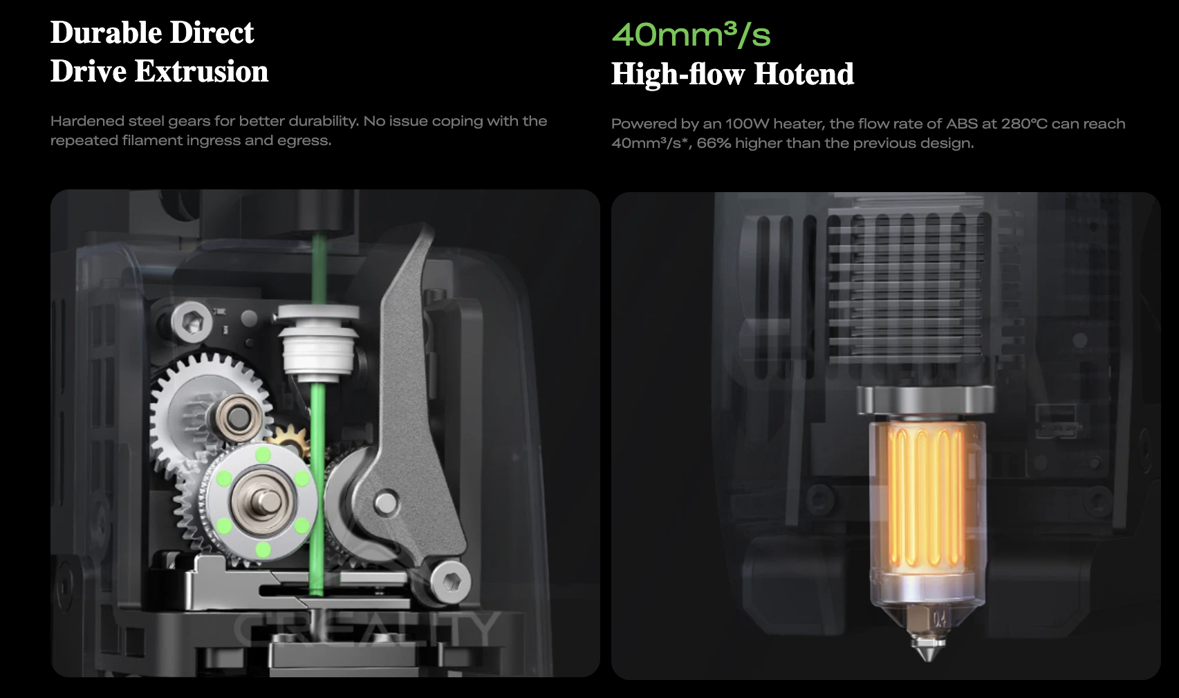 🧵 Direct-drive extruder with dual hardened gears built for durability.