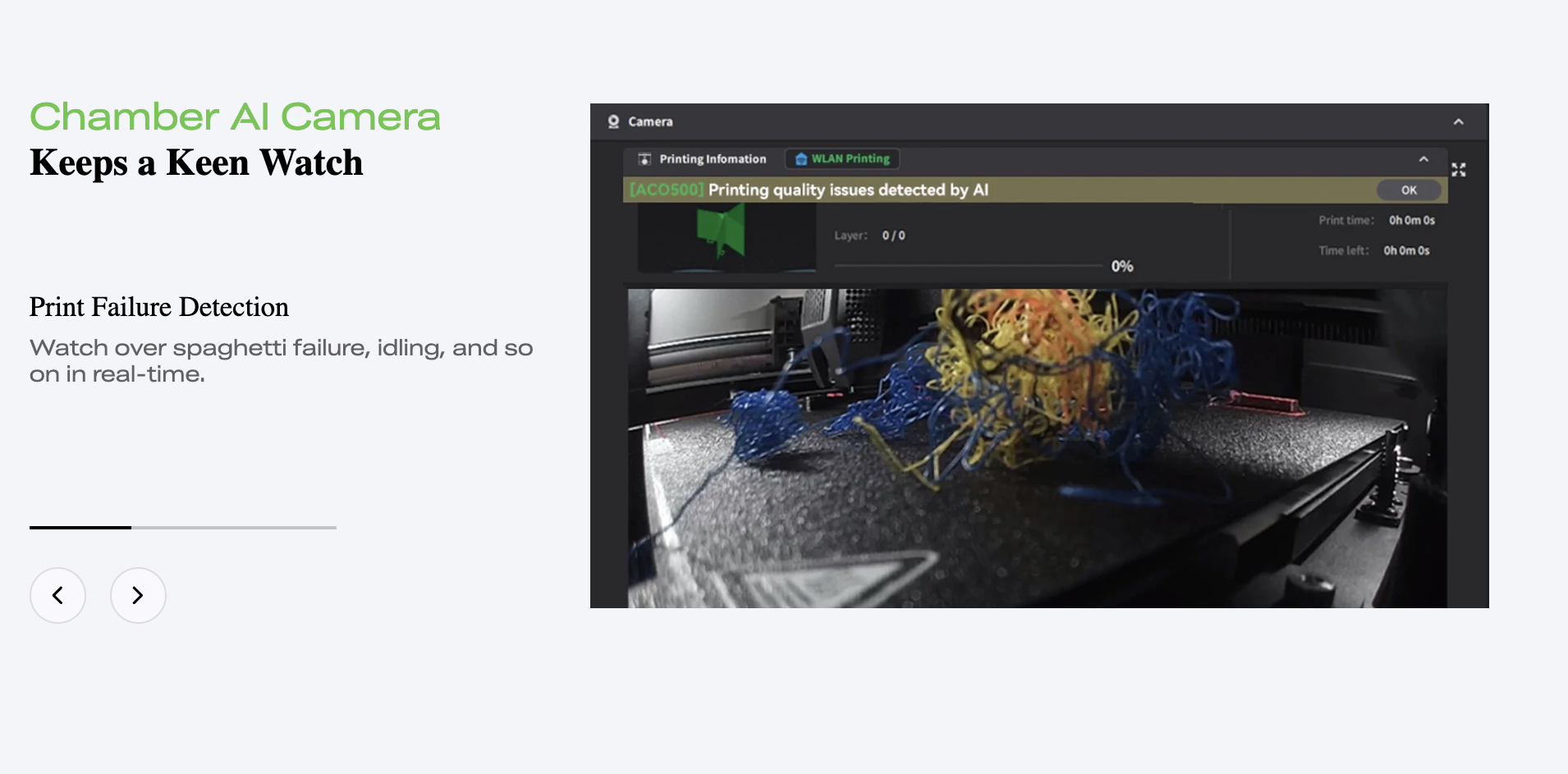 🧠 Smart AI-Powered Printing: Dual AI cameras for real-time monitoring, failure detection, and automatic print optimization.