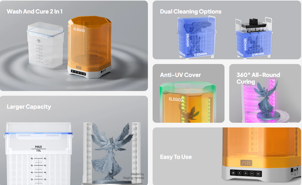 The Elegoo Mercury Plus V3.0 is the latest evolution in Elegoo’s highly popular washing and curing lineup, offering a premium, all-in-one solution for users of resin 3D printers. As resin printing continues to rise in popularity due to its incredible detail and smooth surface quality, the need for a reliable, efficient, and safe post-processing machine has become more important than ever. Elegoo’s Mercury Plus V3.0 is engineered to streamline your workflow, reduce mess, and improve final print quality — making it an essential tool for anyone working with SLA/DLP/LCD resin printers.