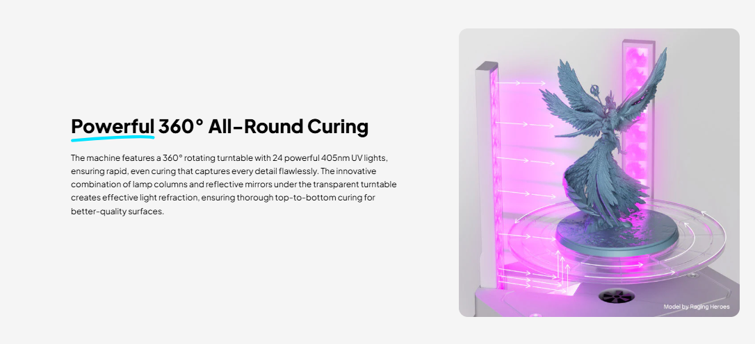360° rotating curing platform for even UV exposure