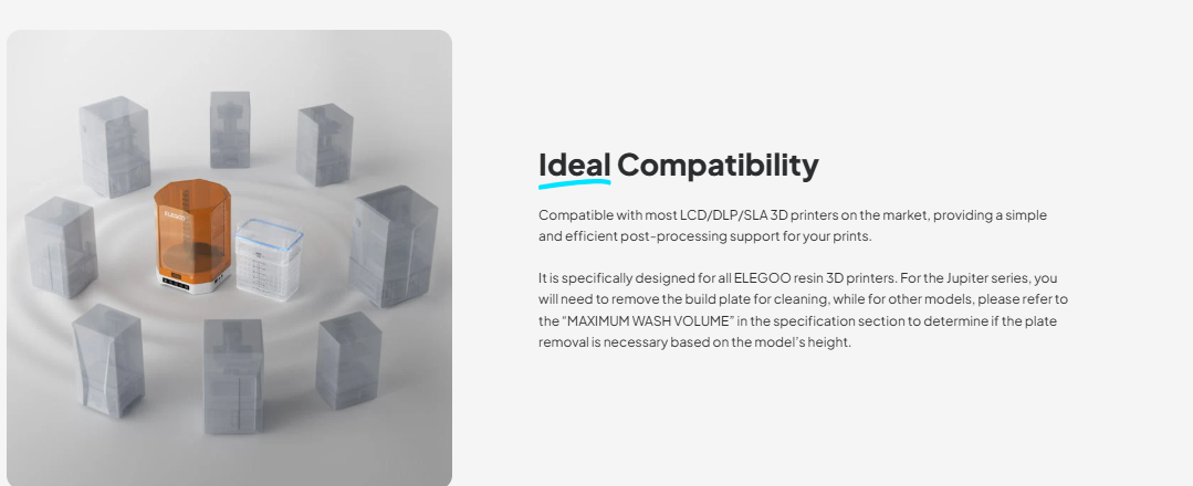 Whether you use the Elegoo Mars series, Elegoo Saturn, or any other resin printer from Anycubic, Creality, Phrozen, or similar brands, the Mercury Plus V3.0 works seamlessly with most SLA/DLP/LCD resin prints.