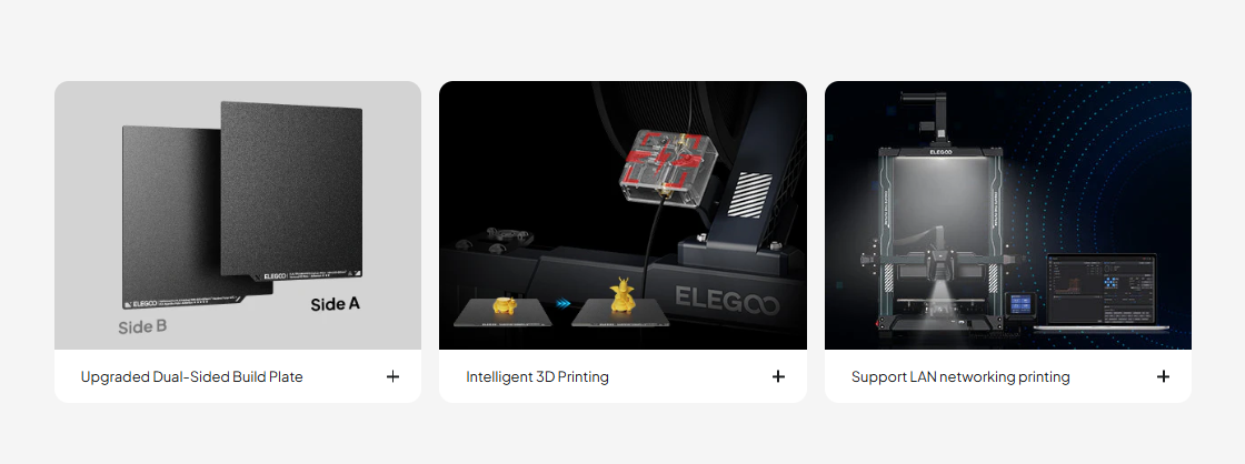 - 🔥 Intelligent Heatbed: Segmented heating saves power, heats only where needed.