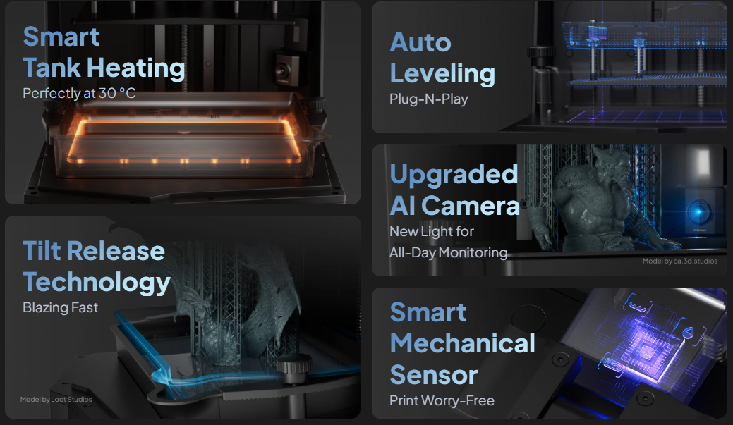 - Auto Resin Feeding – Ensures consistent supply during long prints