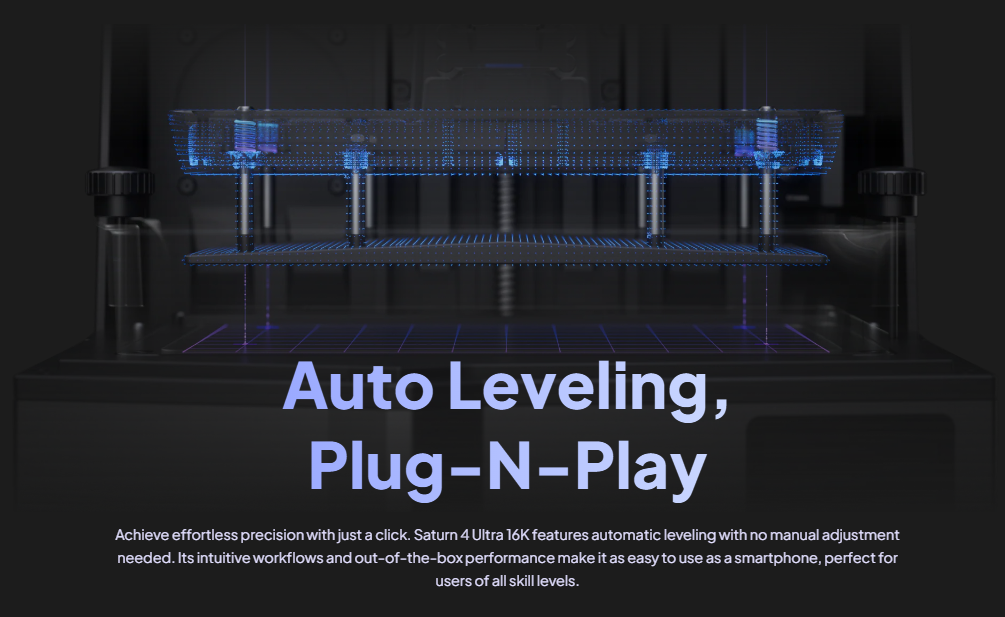 - Auto Resin Leveling – No more manual adjustments
